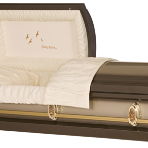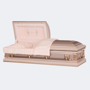 20-Gauge Sealed Metal Casket in White/Pink Highlights with Shirramatic Interior with Carnation Head Panel