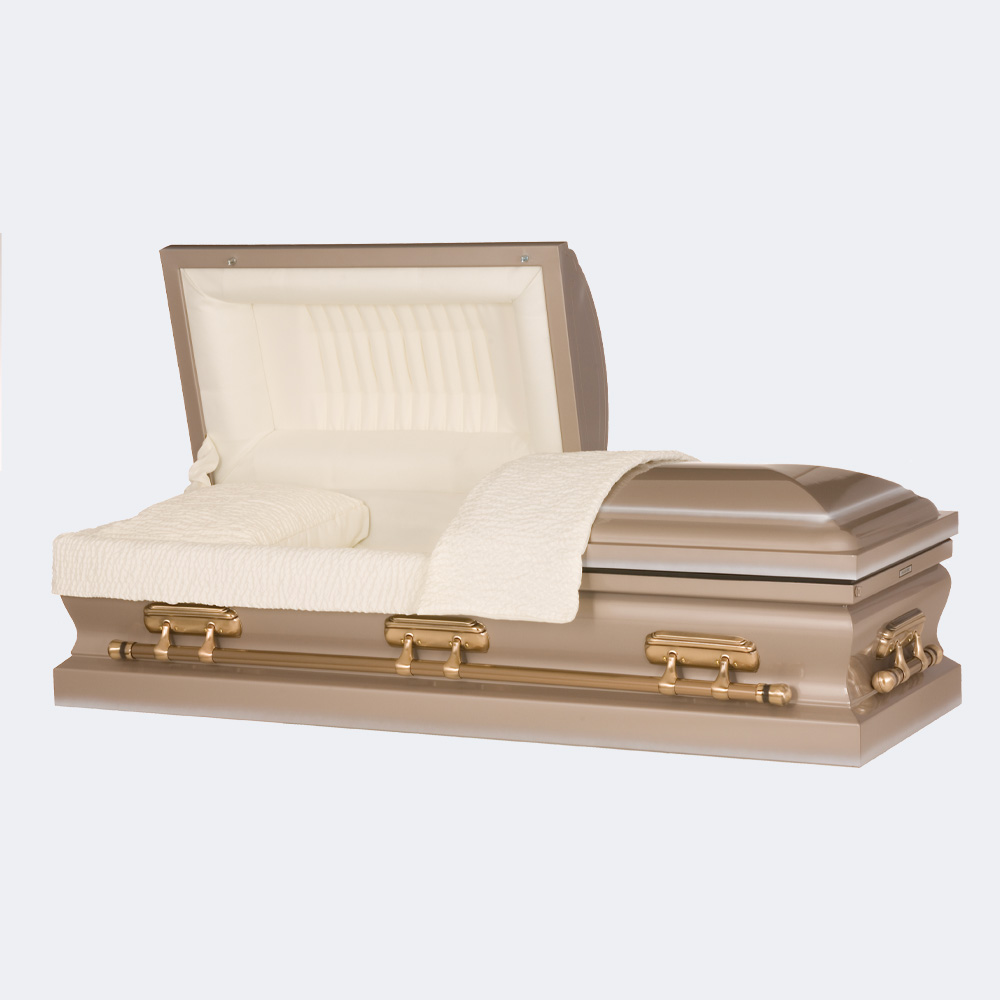 18-Gauge Sealed Metal Casket in Colonial Beige w/ White Highlight with Eggshell Frost Interior with Pipe Head Panel